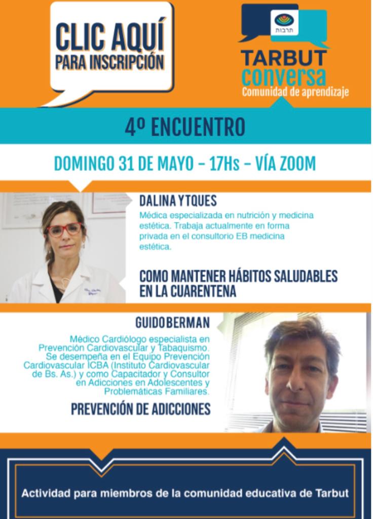 Charla: “Como mantener hábitos saludables durante la cuarentena” – Dentro del Ciclo Tarbut Conversa, grupo de padres del Colegio Tarbut.