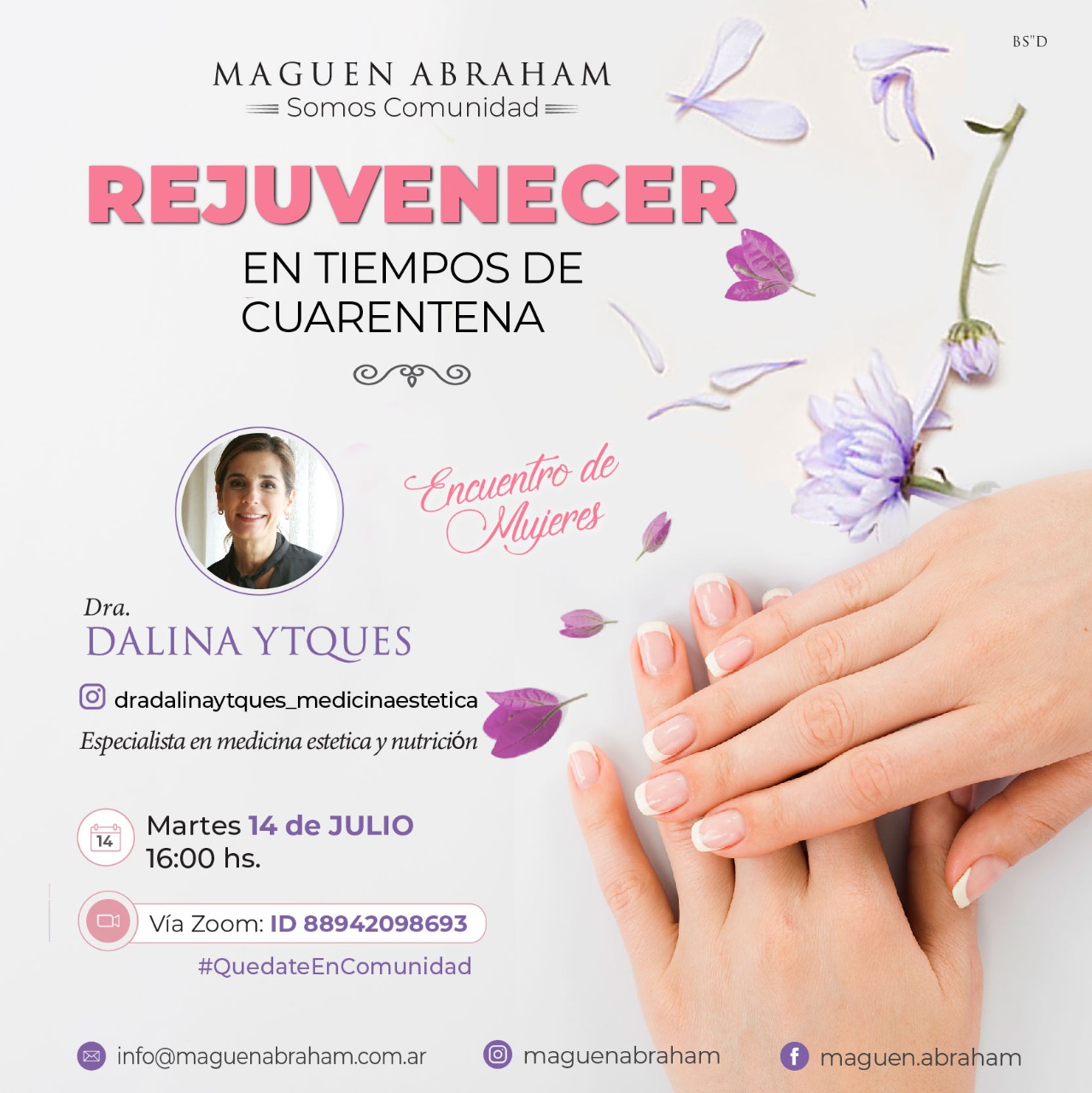 Encuentro de mujeres en la comunidad Maguen Abrham: “Rejuvenecer en tiempos de cuarentena” donde desarrollé herramientas para el cuidado personal y rejuvenecimiento.